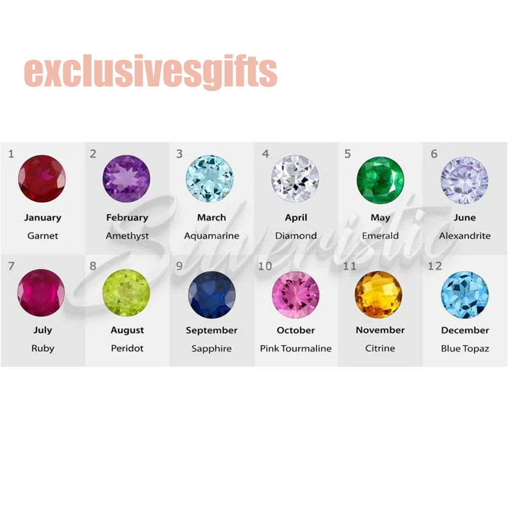Birthstones are ordered from left to right.