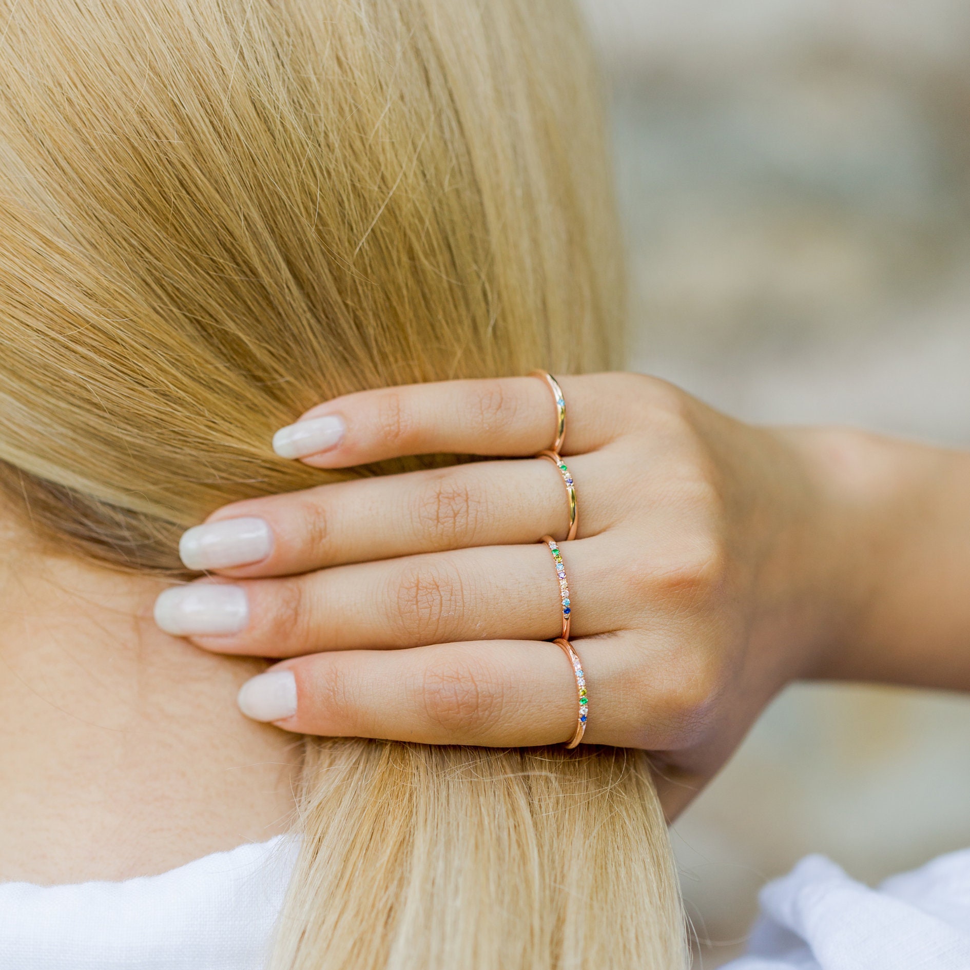 The exquisite ring can be inlaid with multiple birthstones. The ring can hold the memories of your family members or friends in the form of their birthstones.