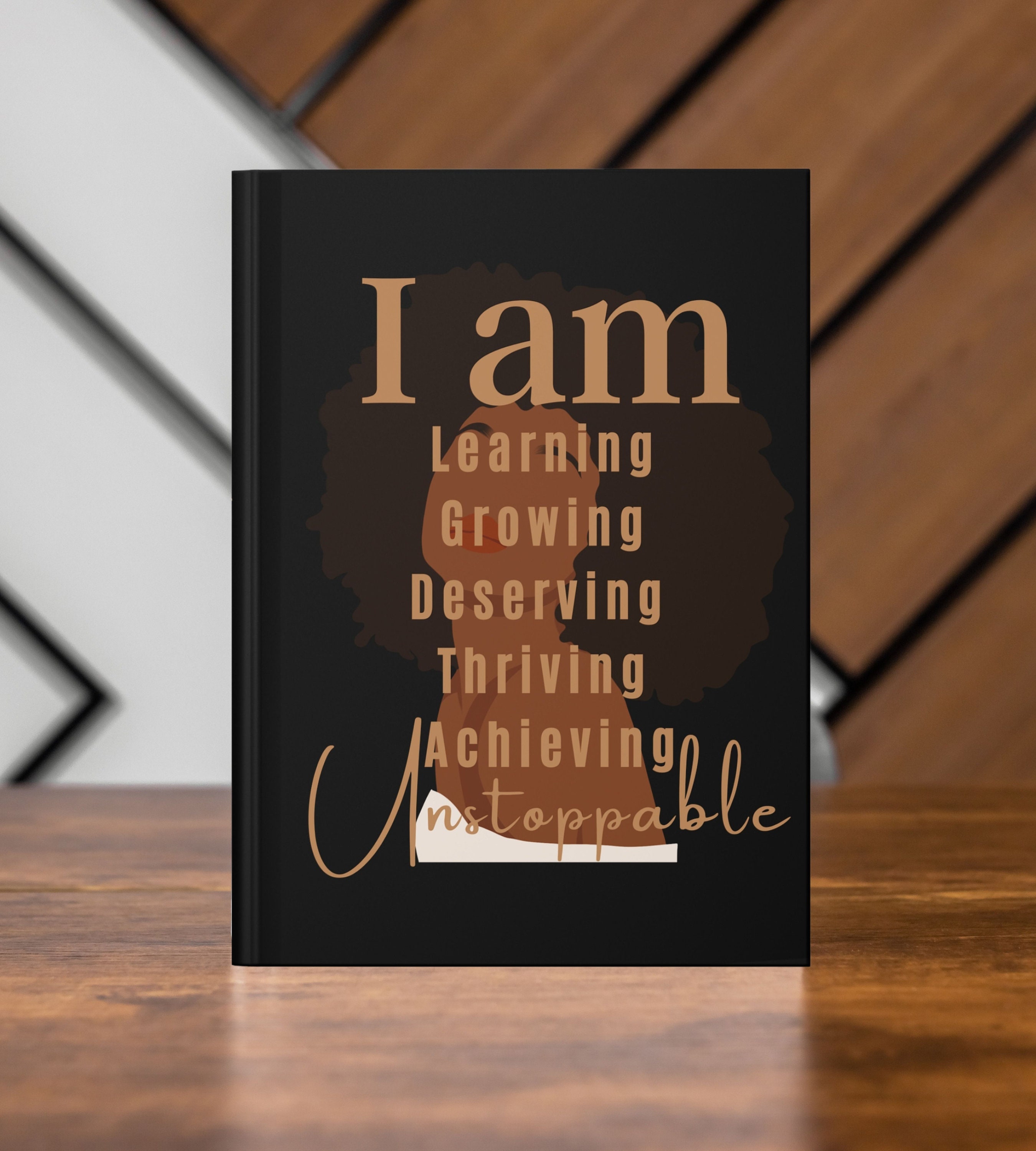 Empower your journey with this “I Am Unstoppable” journal, designed for Black women to capture thoughts, goals, and affirmations. Perfect for self-reflection, personal growth, and documenting your unstoppable spirit.