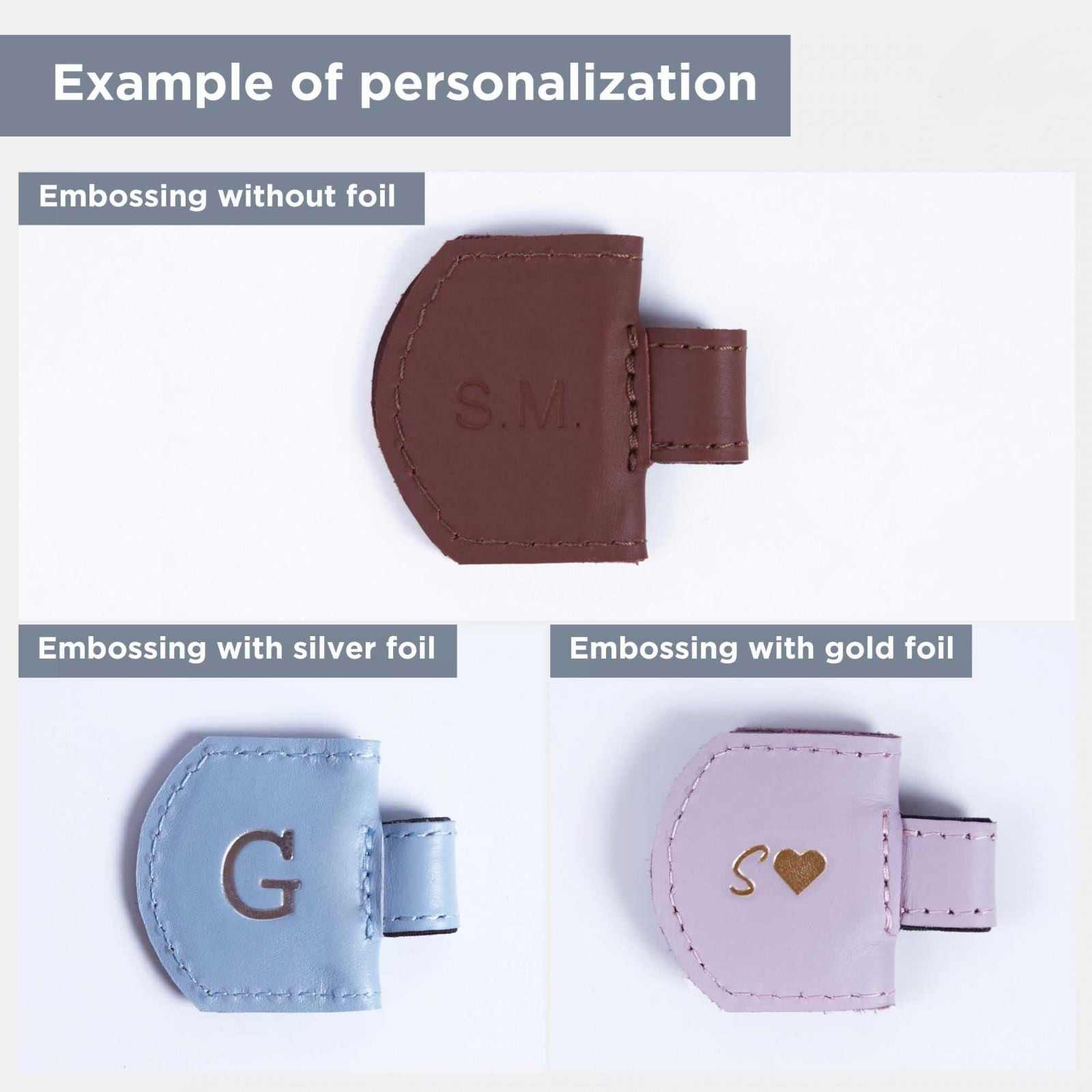 There is the possibility to add heat embossing or laser engraving of a name, date, initials, or special symbols.