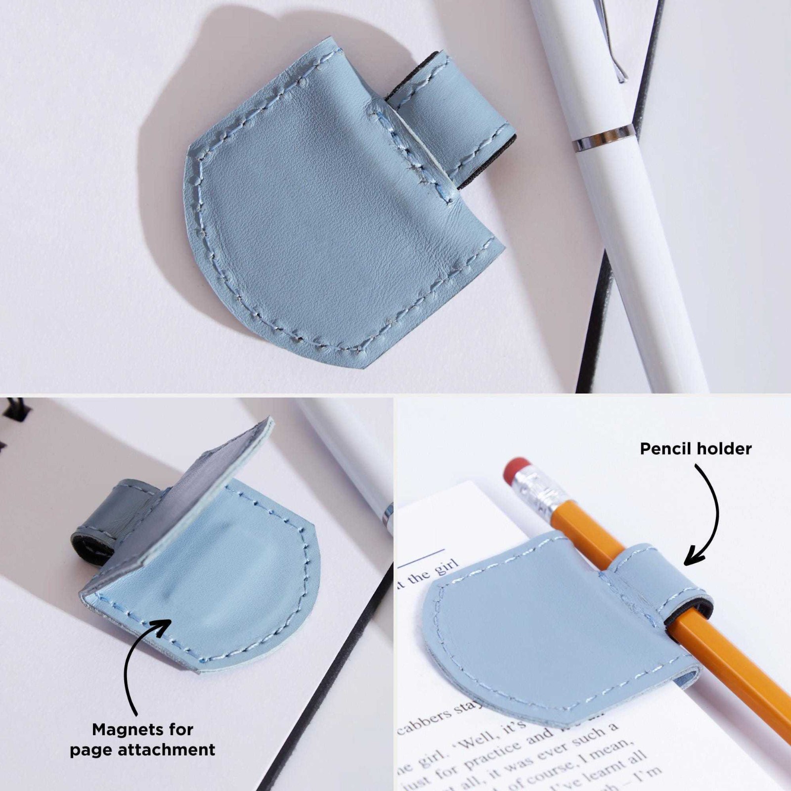 Discover the perfect leather bookmark for any book lover. Handcrafted from premium leather, this custom bookmark features a magnetic flap to keep your page secure and a convenient leather holder for a pen or pencil. Ideal as an anniversary gift or unique gift for him, it adds a touch of elegance to any read. Personalize this leather anniversary gift for a special touch, making it the perfect bookmark for men or anyone who cherishes a good book. Leather gifts like this are perfect for a book lover gift.