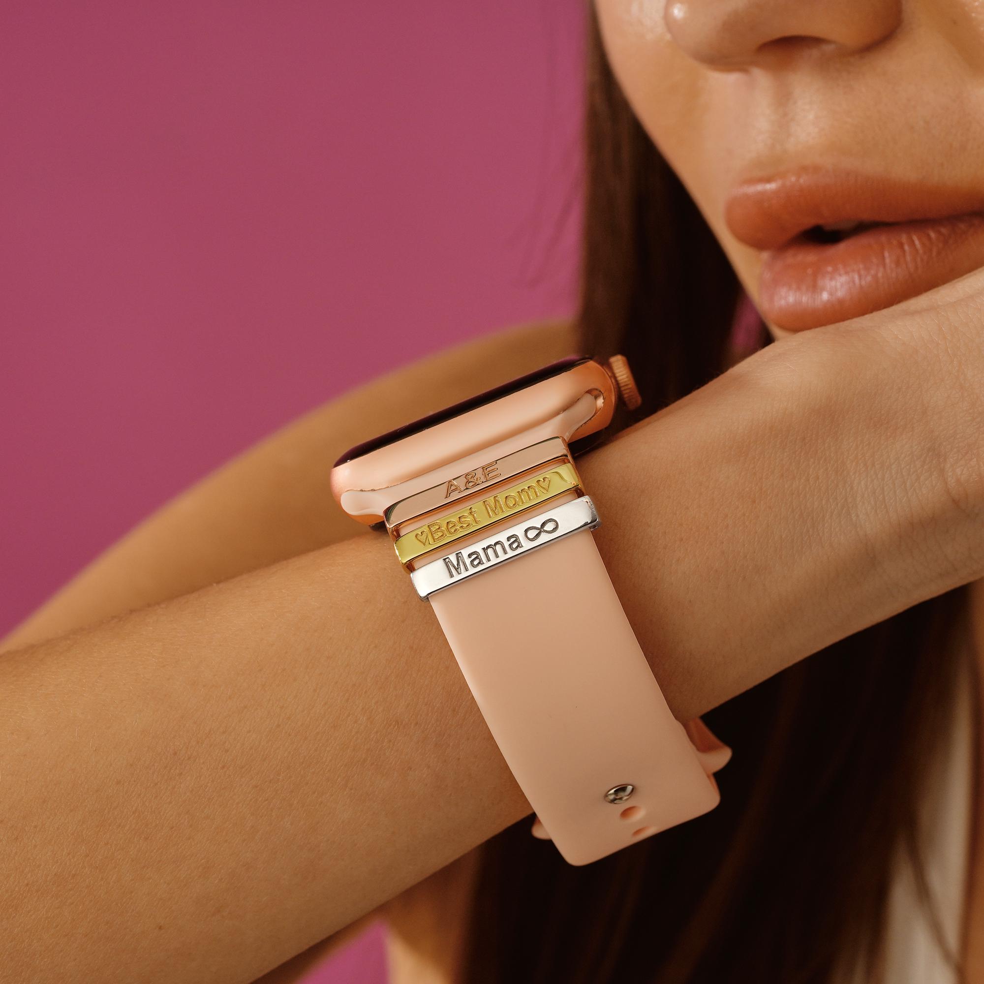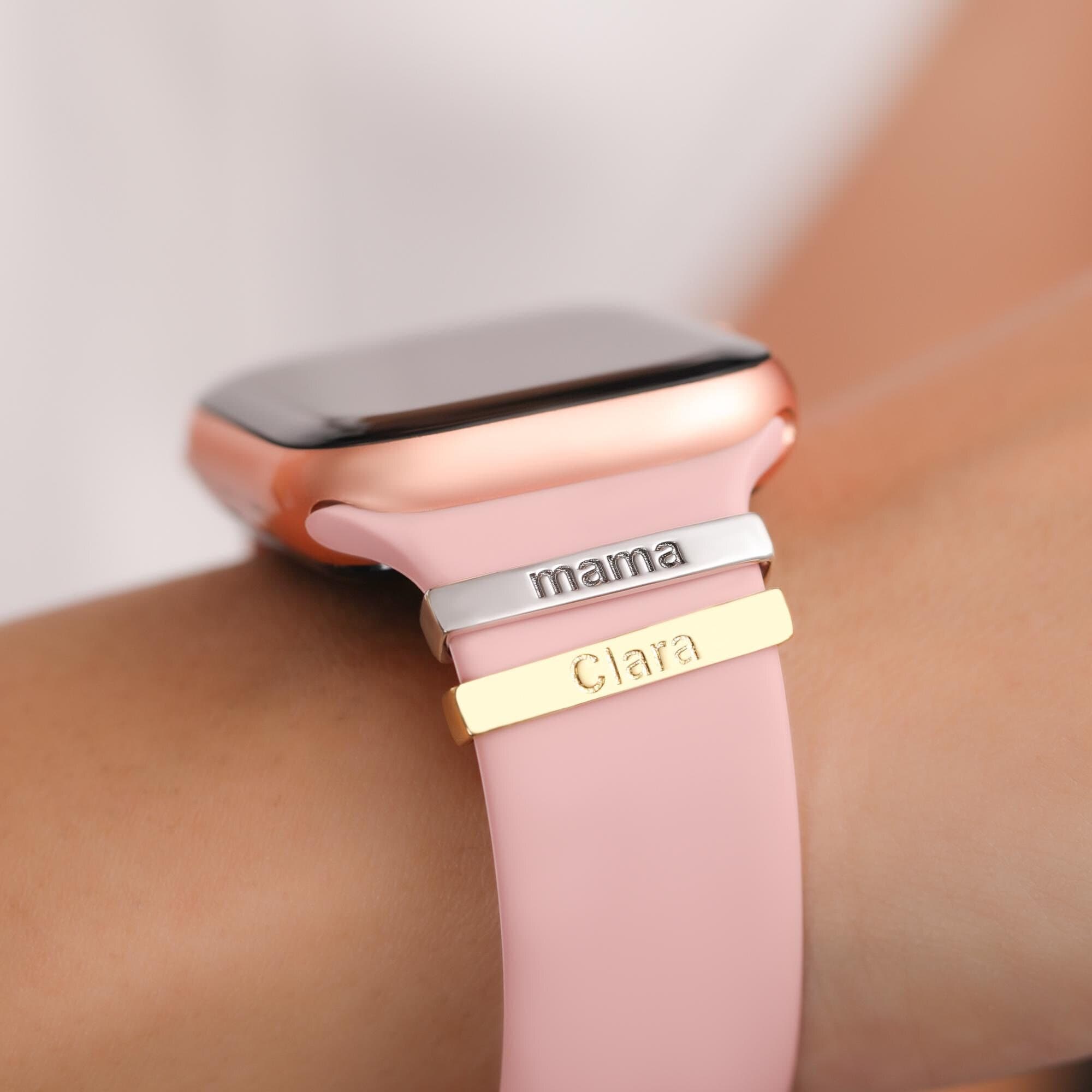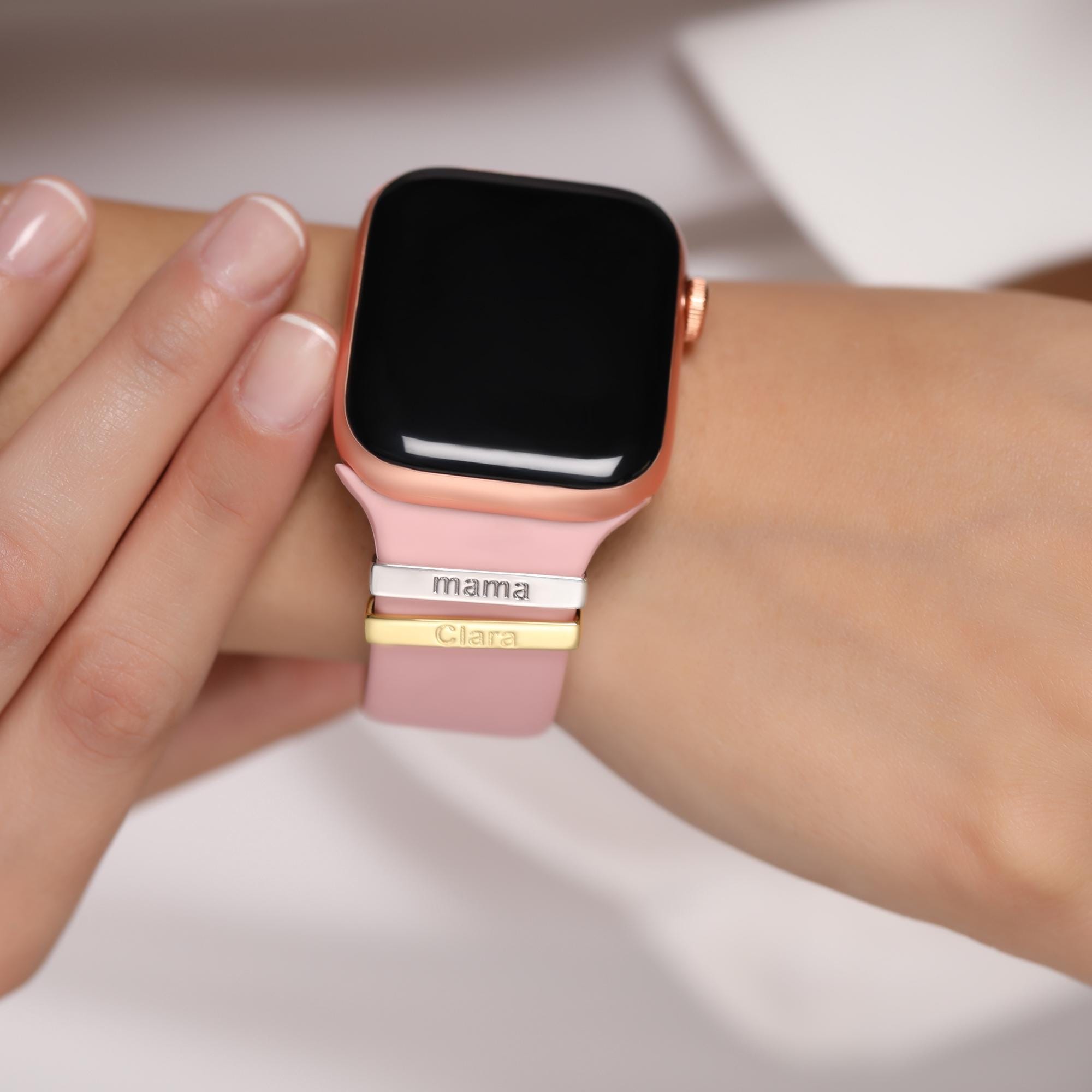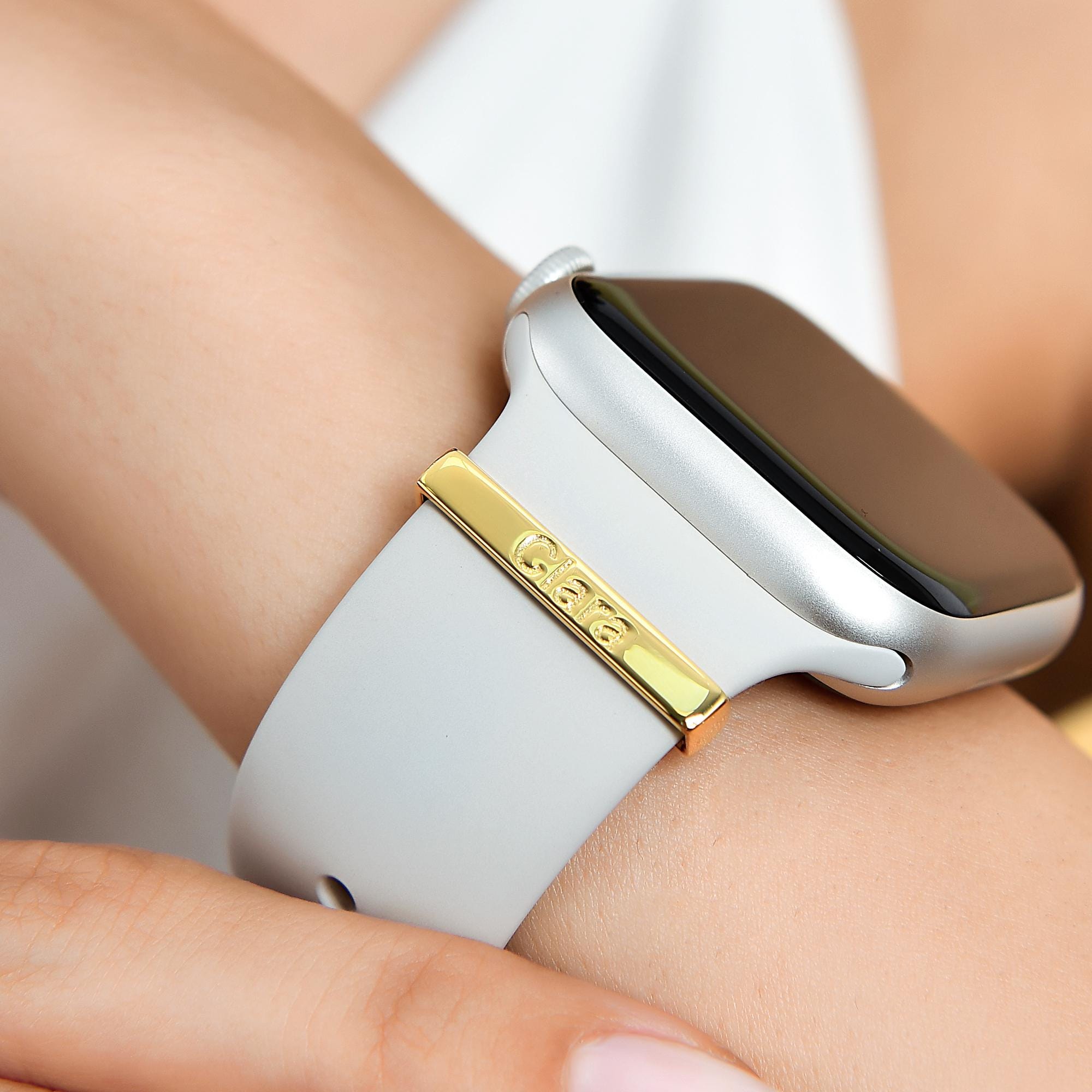 Unique design - Enhance your wrist game with our Personalized Name Watch Charm. This elegant bar charm is designed to fit seamlessly on your Apple Watch strap, adding a unique and personal touch to your favorite accessory. Personalize with a name or meaningful word, making it a one-of-a-kind piece that reflects your personality.