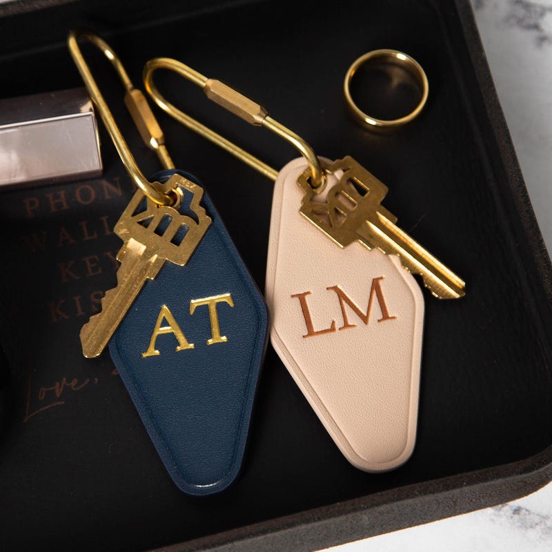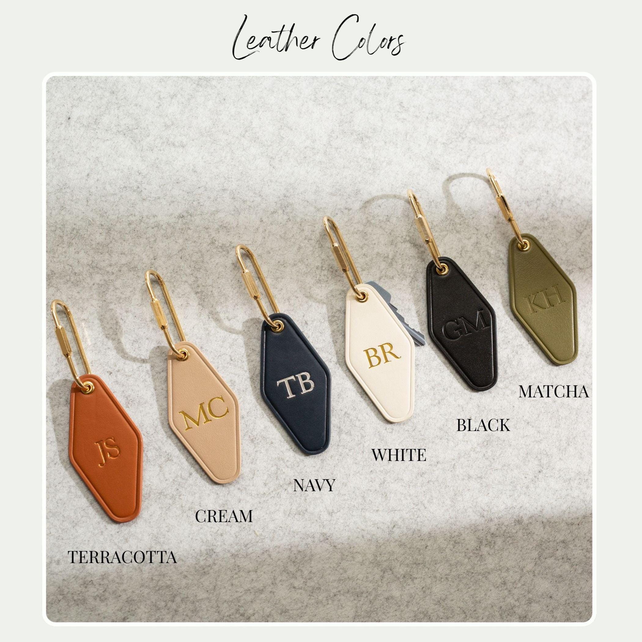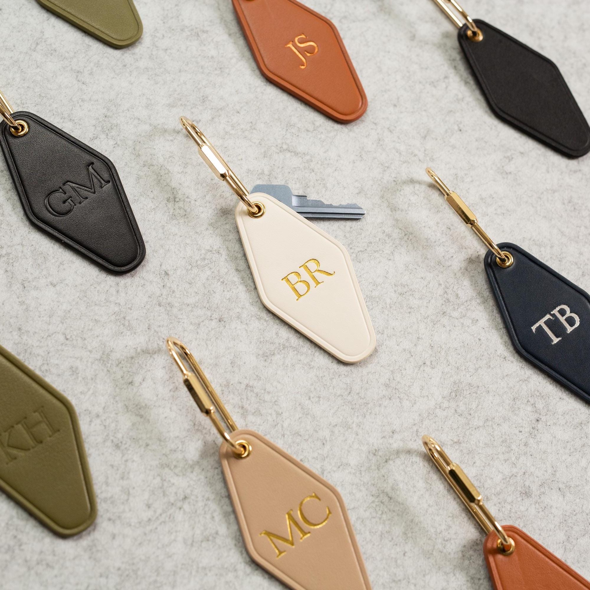 Our Hand-Embossed Leather Keychain is uniquely shaped in an elegant diamond design and paired with a stunning Gold Key FOB. Choose from a palette of six distinct leather colors to match your style, and further customize with a choice of blind embossing, gold, silver, or rose gold foil for a truly individualized key chain