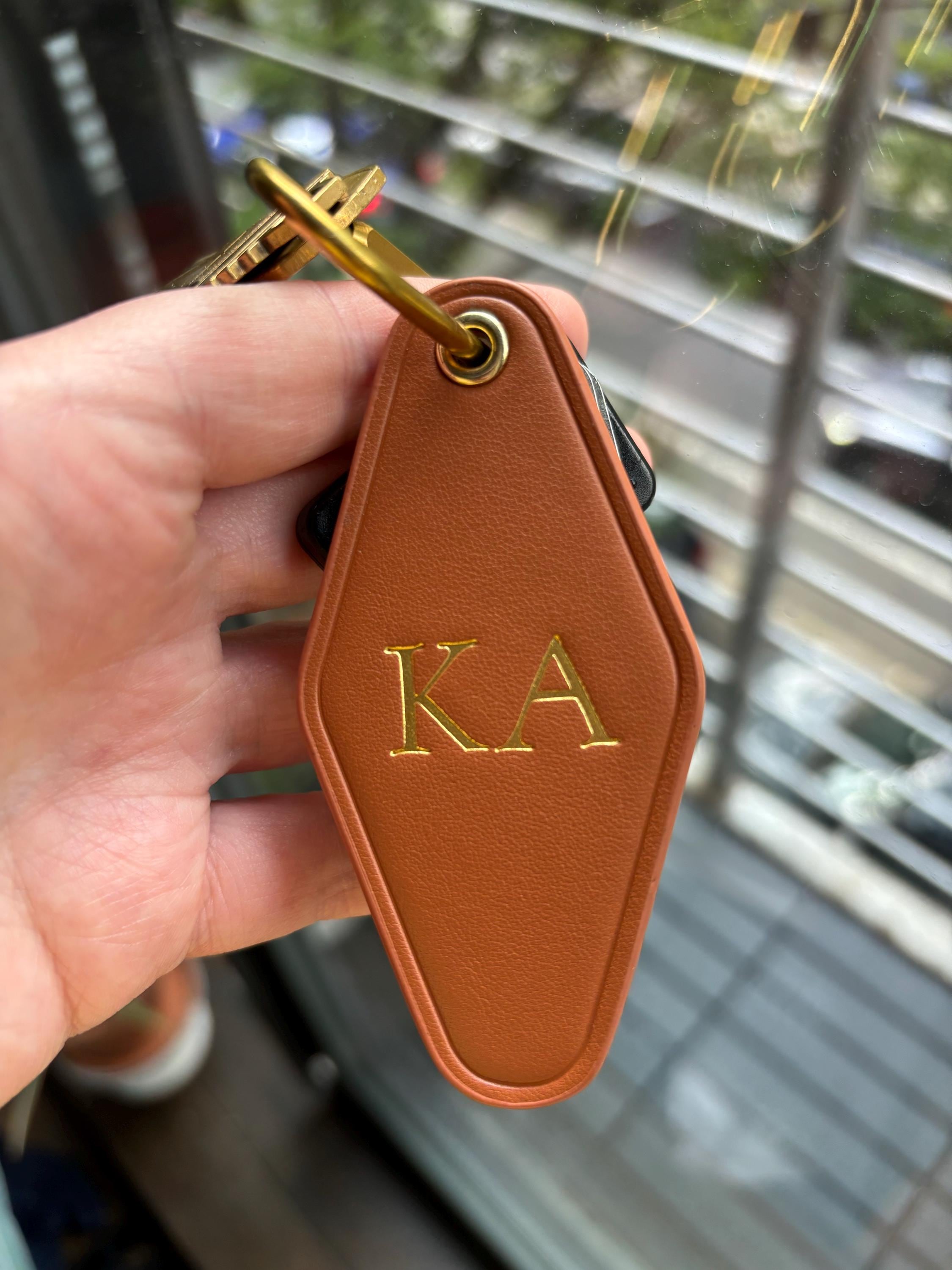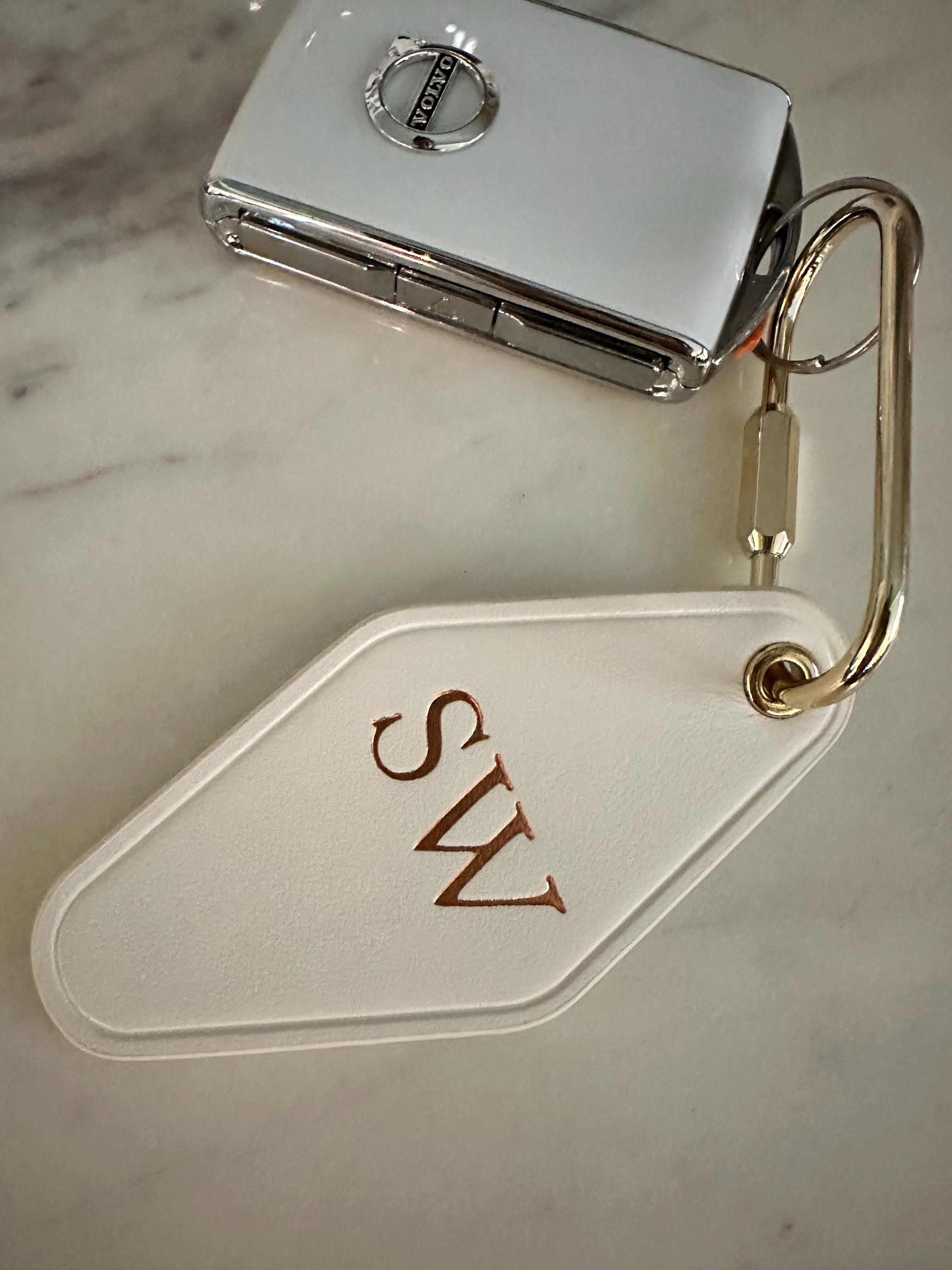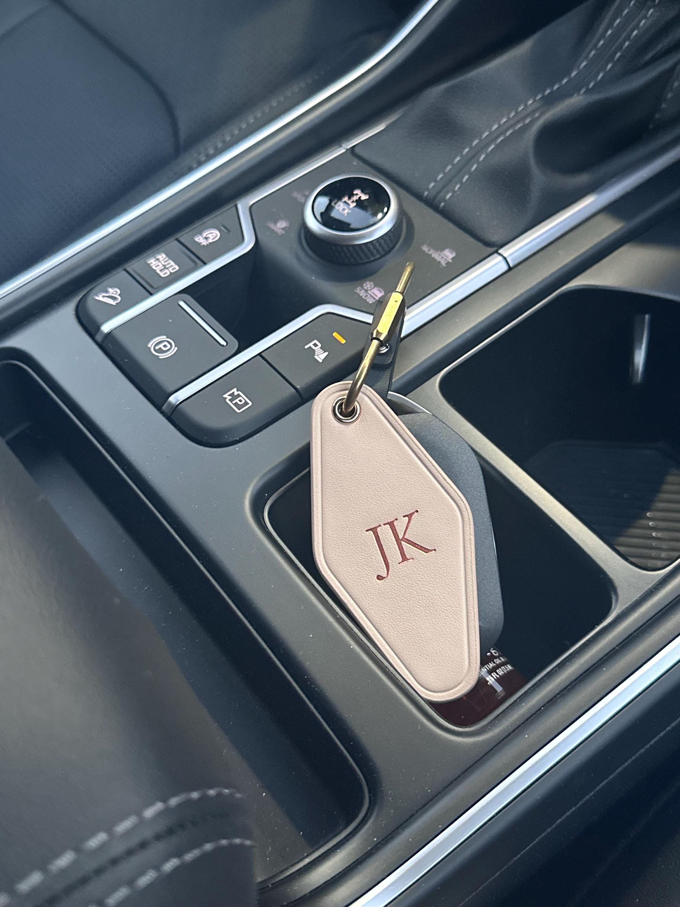 Our Hand-Embossed Leather Keychain is uniquely shaped in an elegant diamond design and paired with a stunning Gold Key FOB. Choose from a palette of six distinct leather colors to match your style, and further customize with a choice of blind embossing, gold, silver, or rose gold foil for a truly individualized key chain