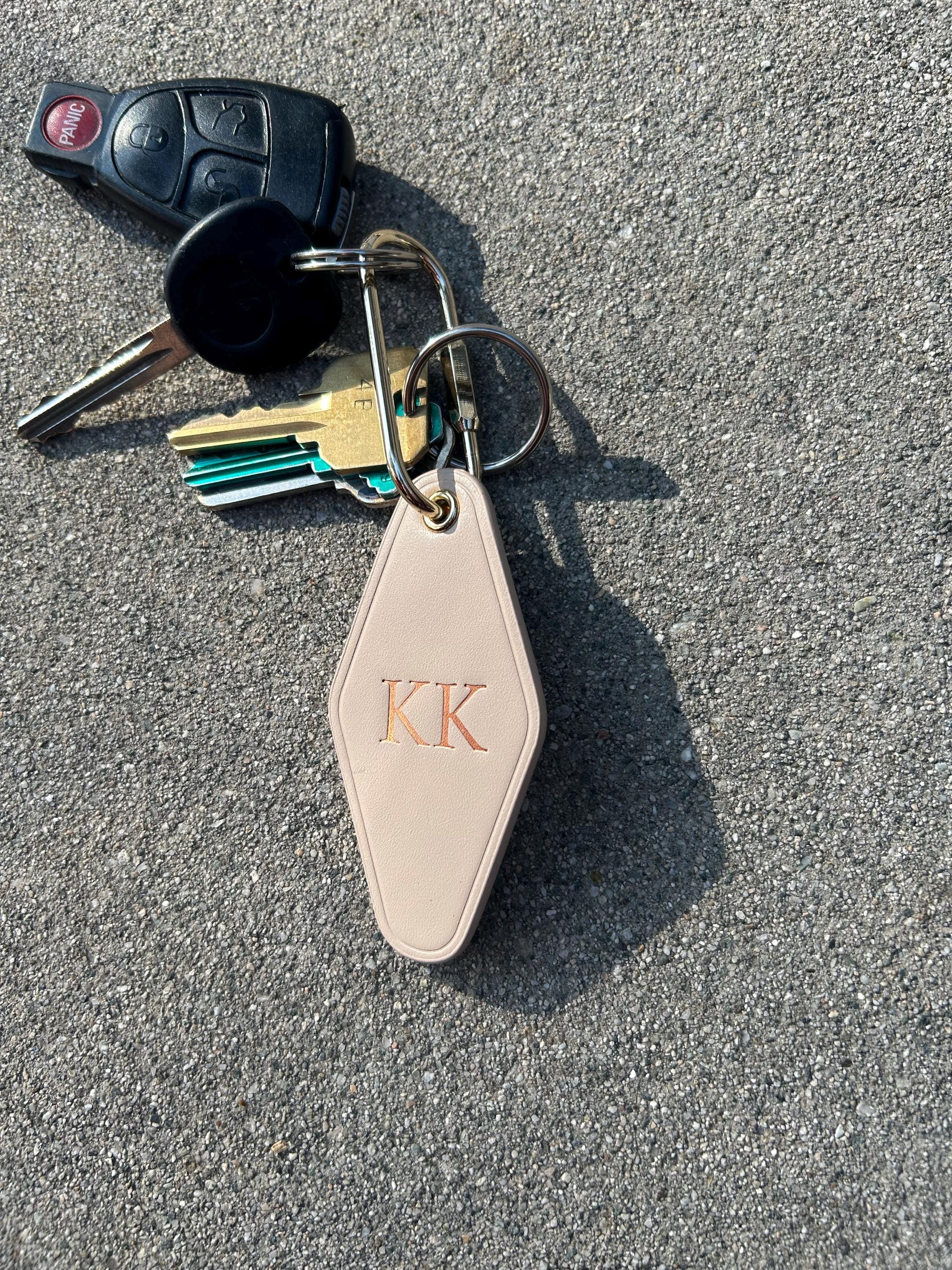 - Embossed Diamond Leather Keychain w/ Gold Key FOB