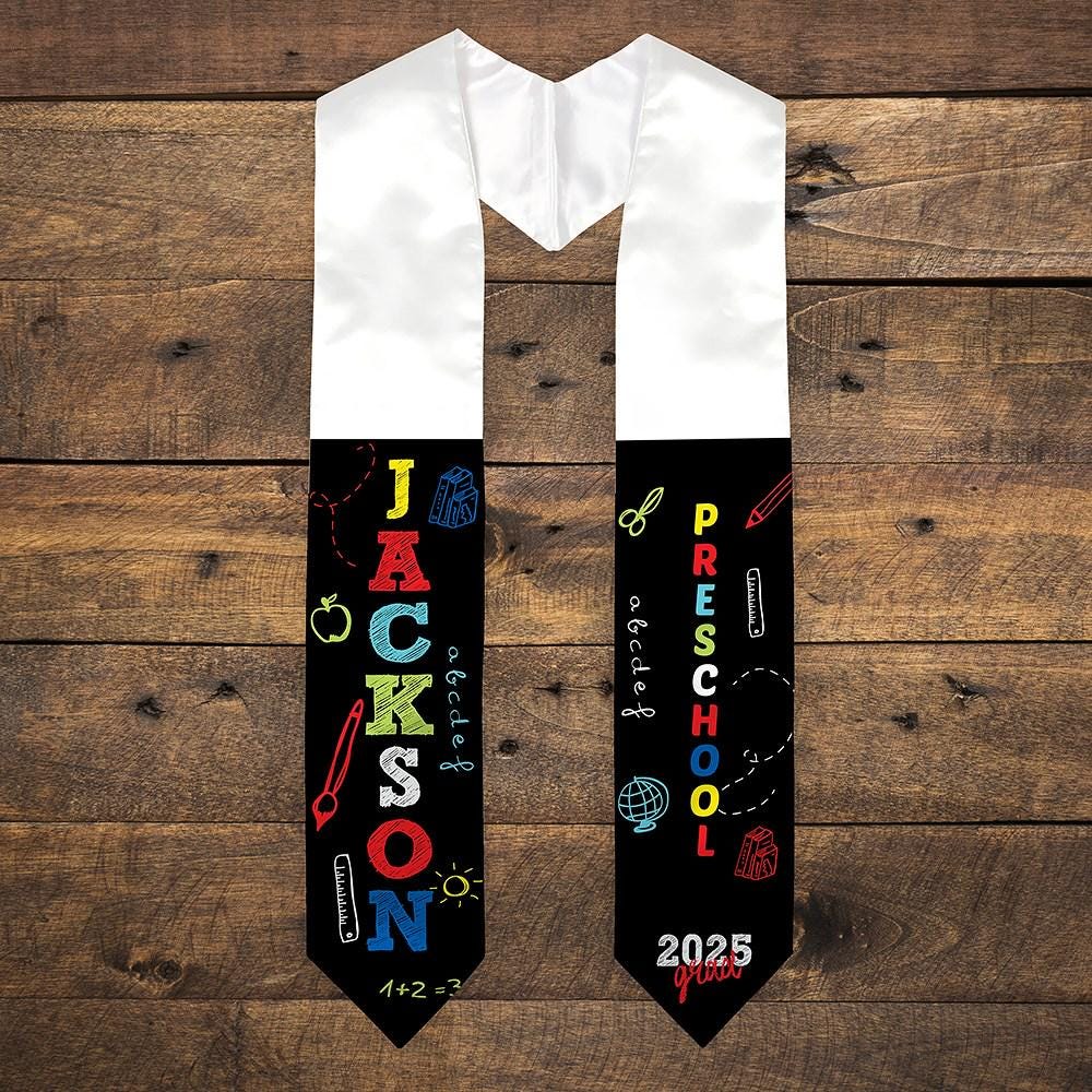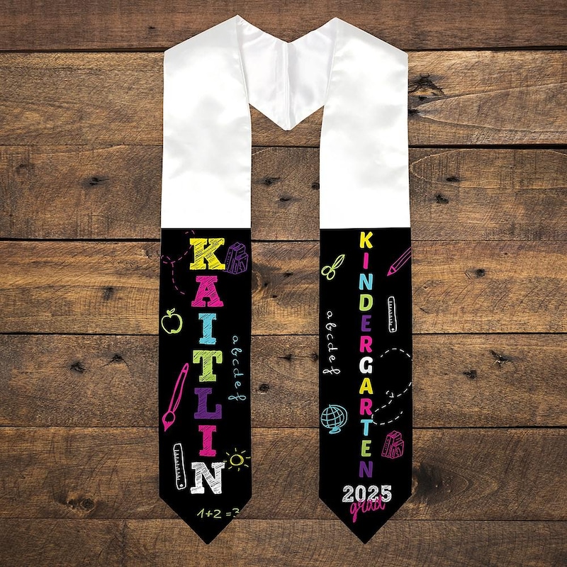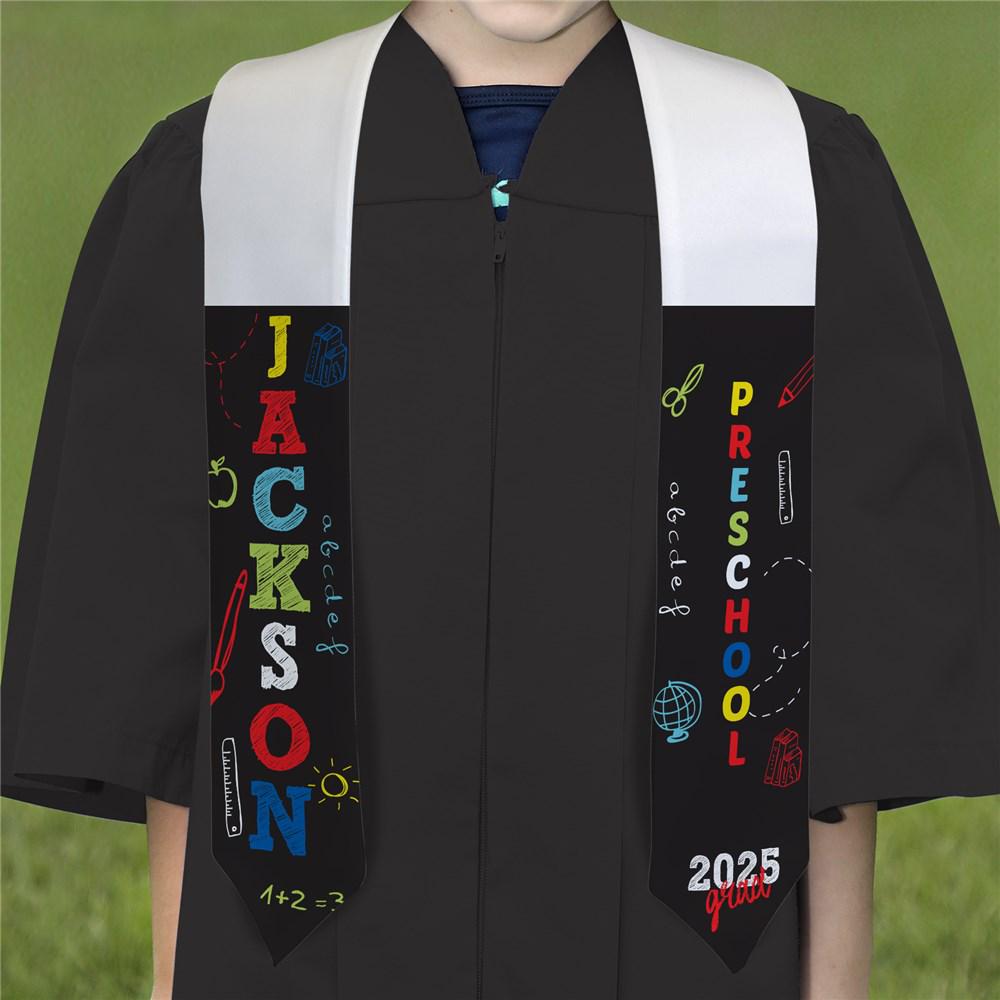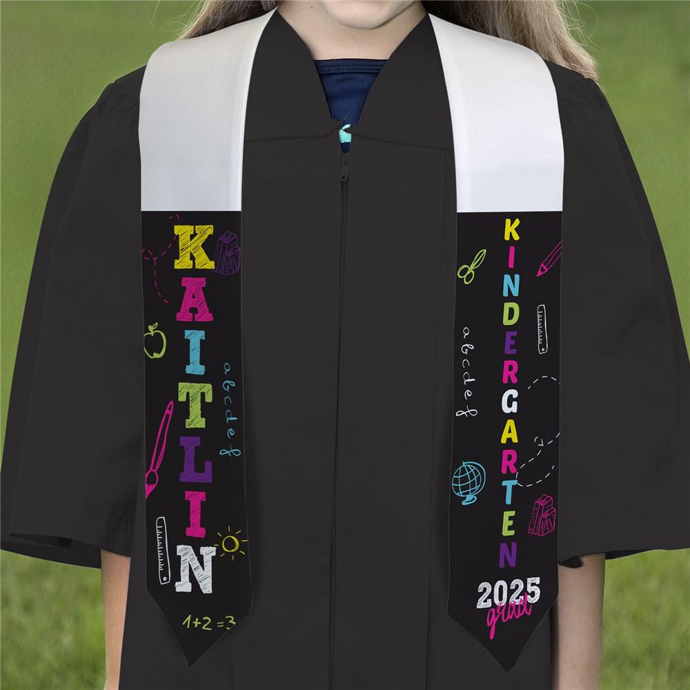 Celebrate your graduate's big achievement with this Personalized Chalkboard Youth Graduation Stole, featuring an adorable chalkboard design.