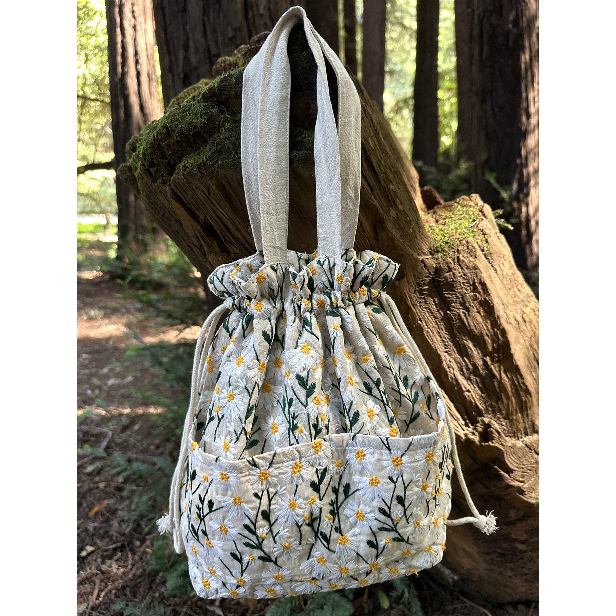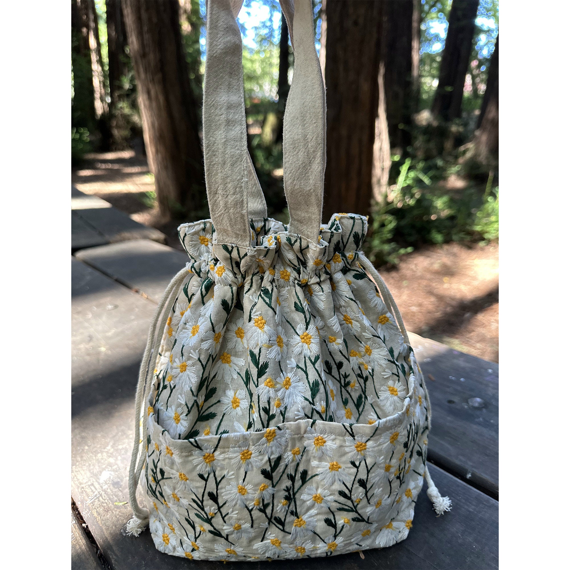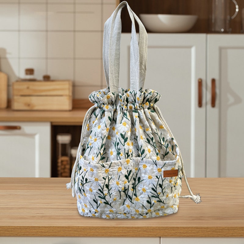 -A simple lunch bag with drawstring closure for easy carrying, or if you open the drawstring, it can be used as a full capacity handbag