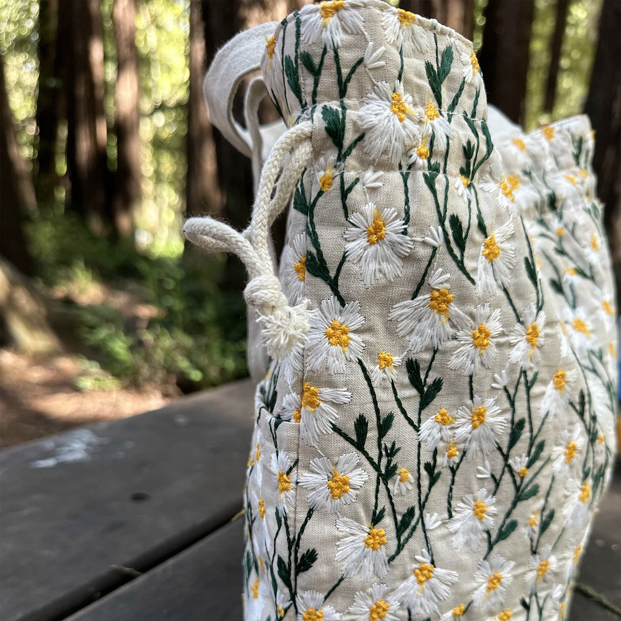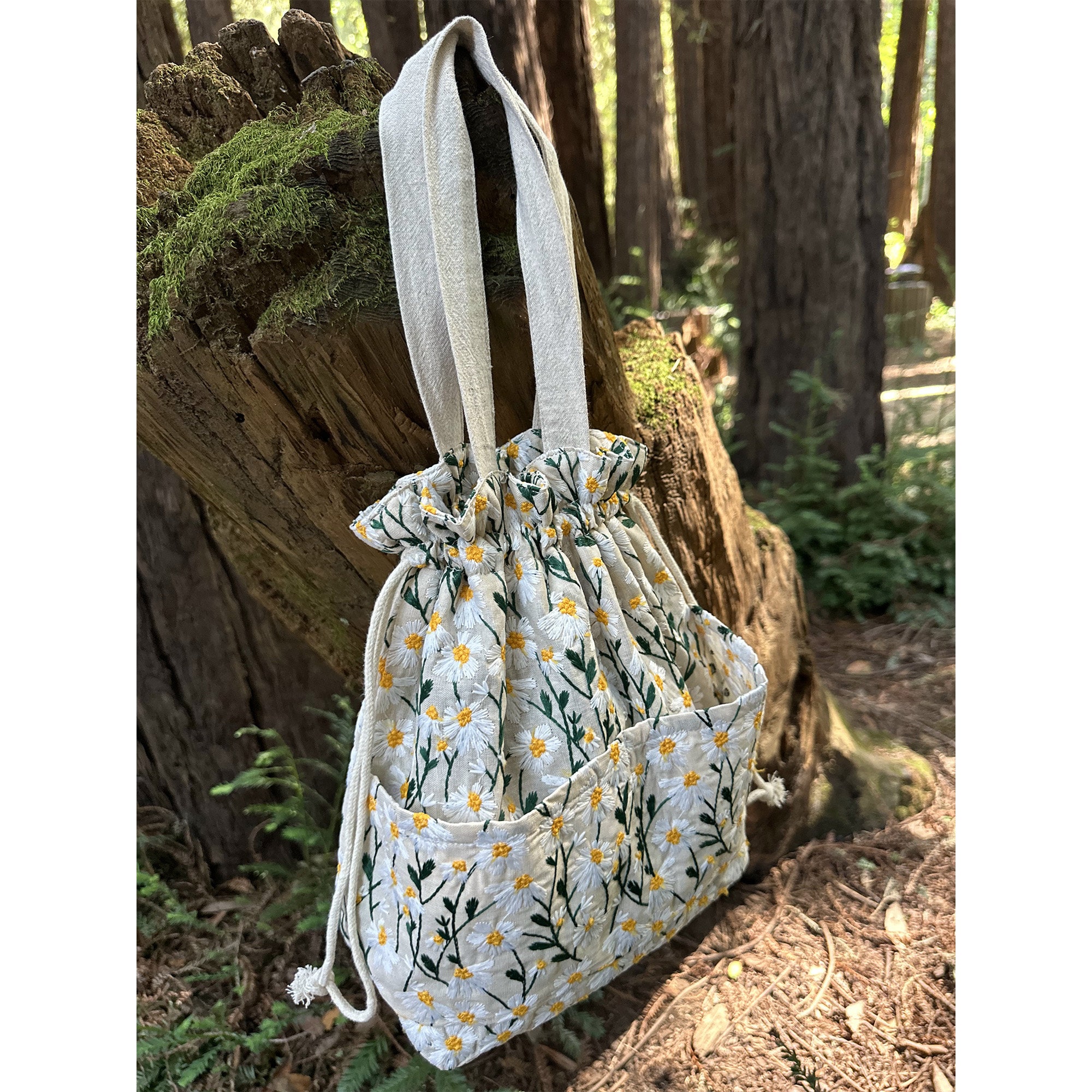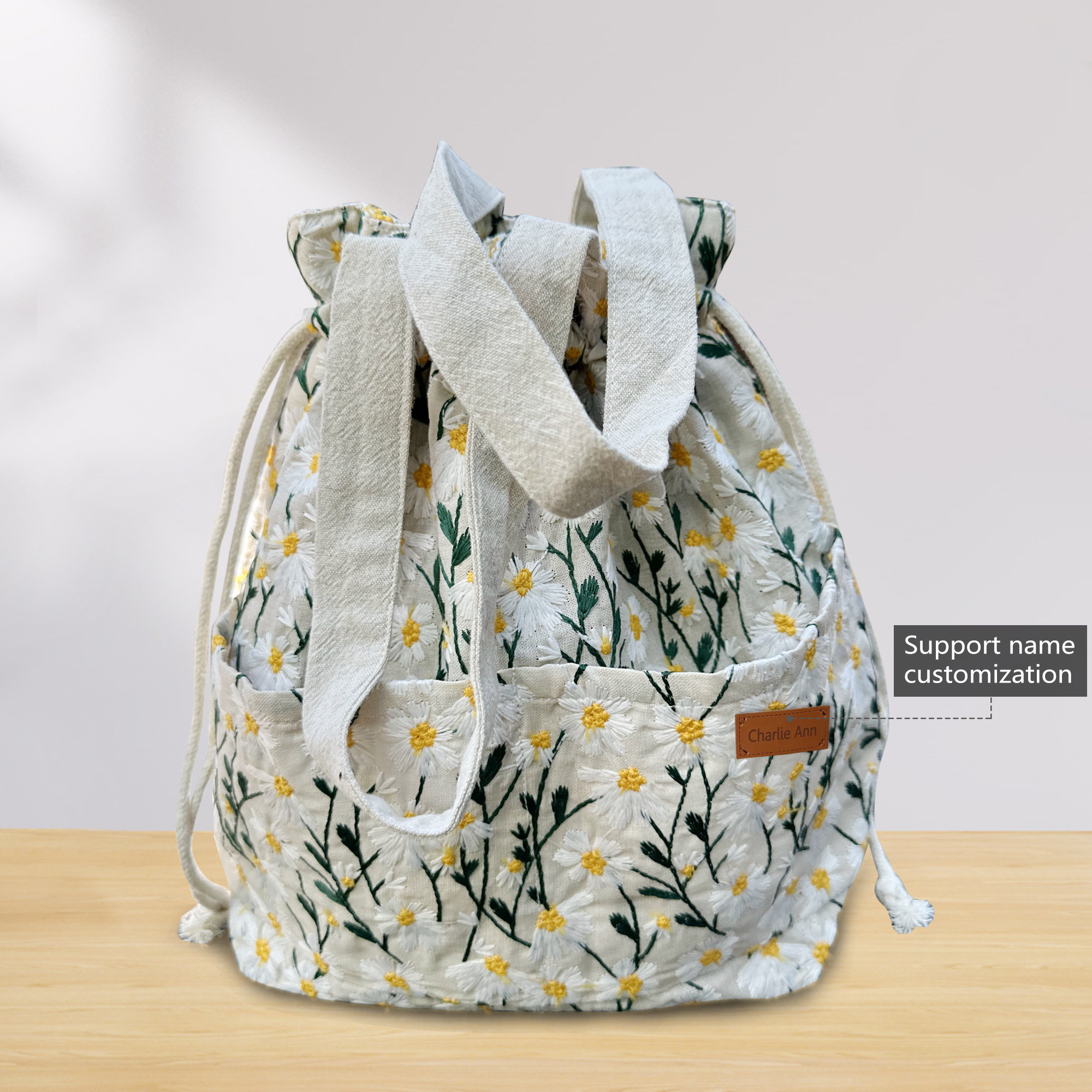 -A simple lunch bag with drawstring closure for easy carrying, or if you open the drawstring, it can be used as a full capacity handbag