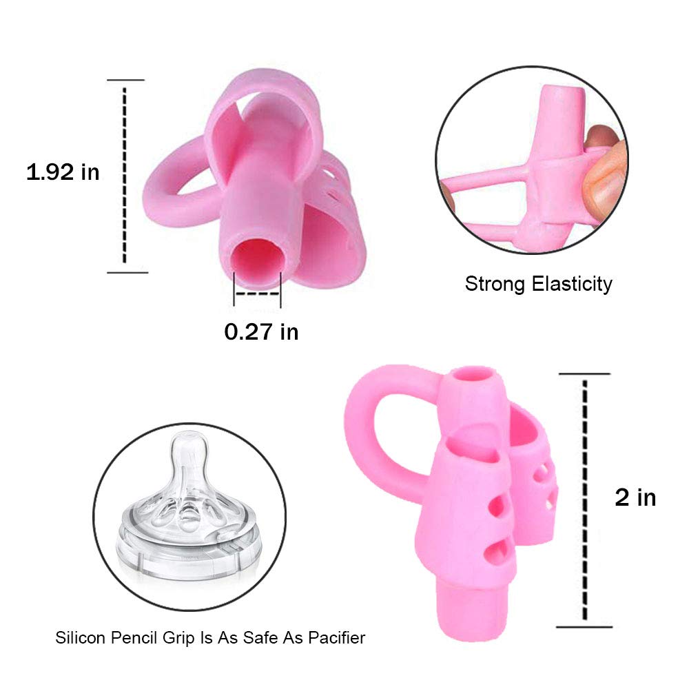 【Easy to Use】pencil grip is designed to be fit for pencils around 0.24-0.3 inch diameter, so that our products can widely used in classrooms,at home, and in therapeutic settings. Ambidextrous for left-handed and right-handed users. Easy to slip onto a standard writing utensils,can flexible connection works for holding pencils, pens, crayons, markers and paintbrushes .