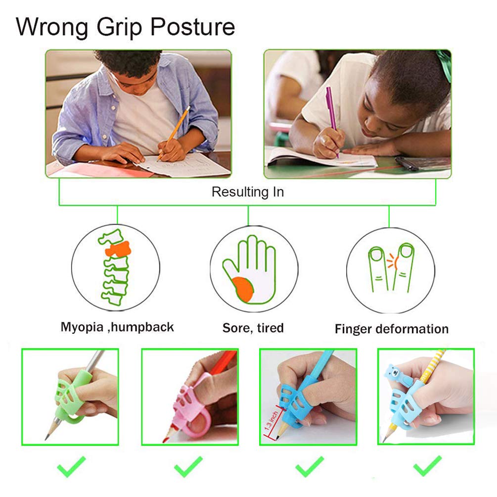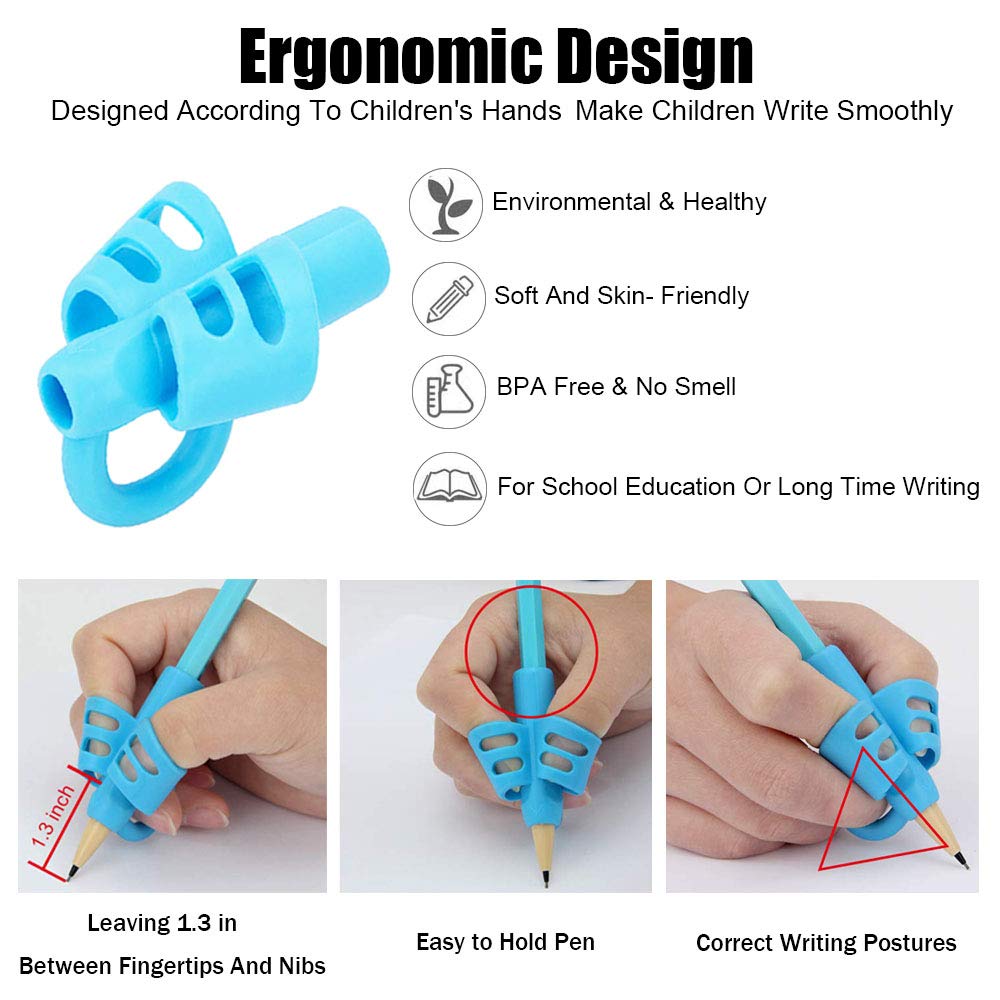 【Support Hand Health, Reduce Hand Fatigue】pencil grips for kids are the original ergonomic writing aid. With consistent use,will make writing becomes easy and natural. In the right way to hold writing utensils will prevent skin irritation and blisters.It also works to relieves kids' hand pa