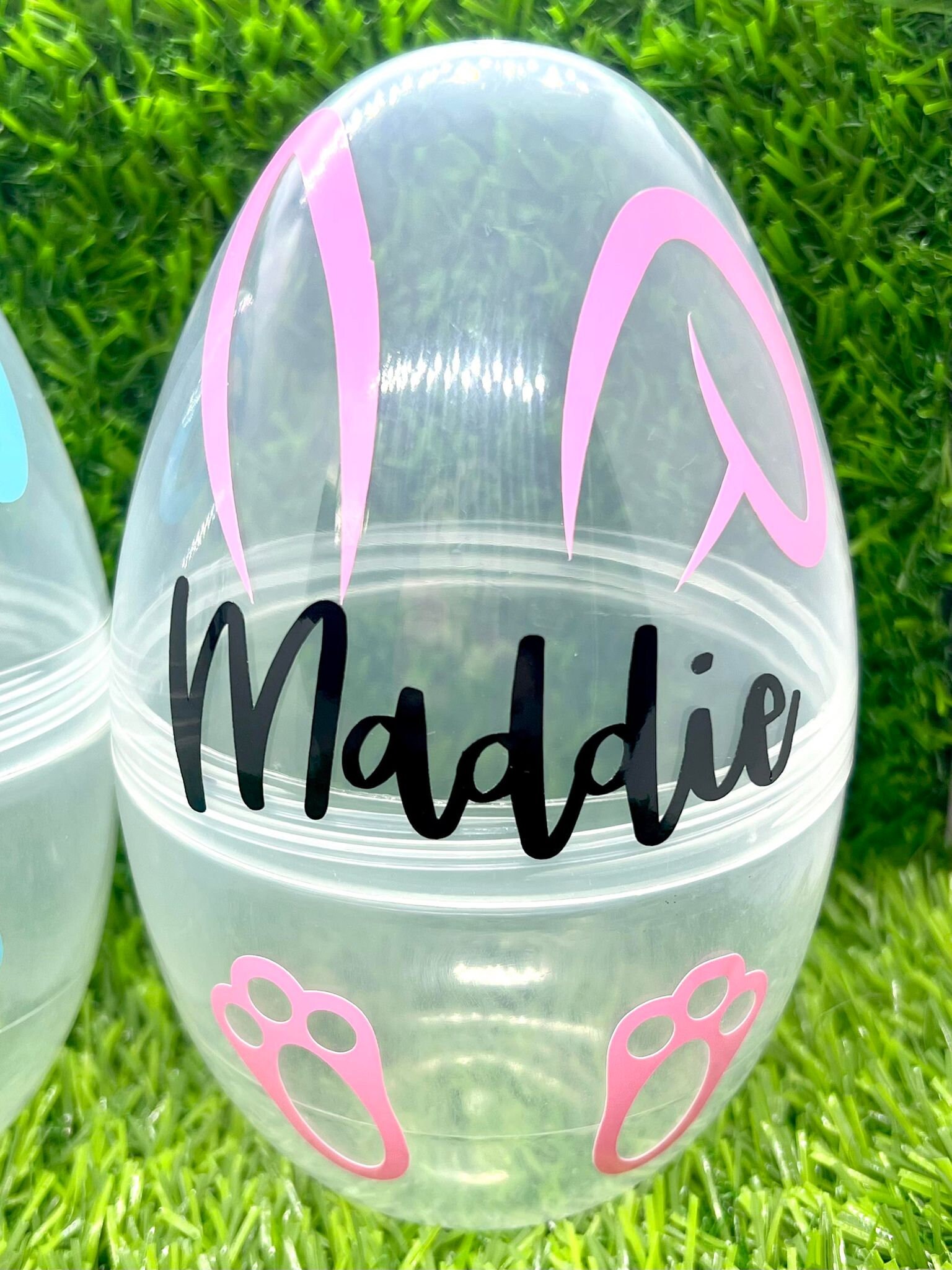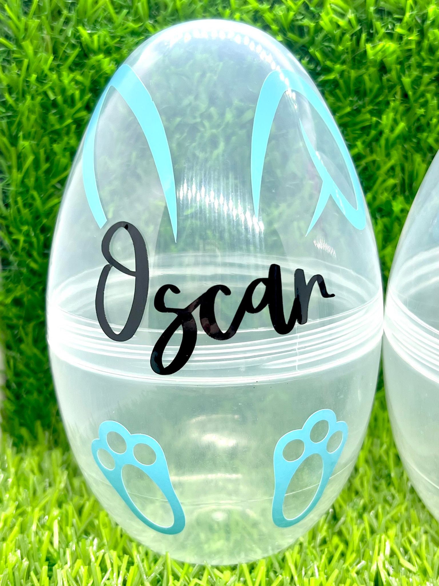 Personalised clear 14cm Easter egg container. Perfect re-usable gift packaging for Easter treats and goodies.