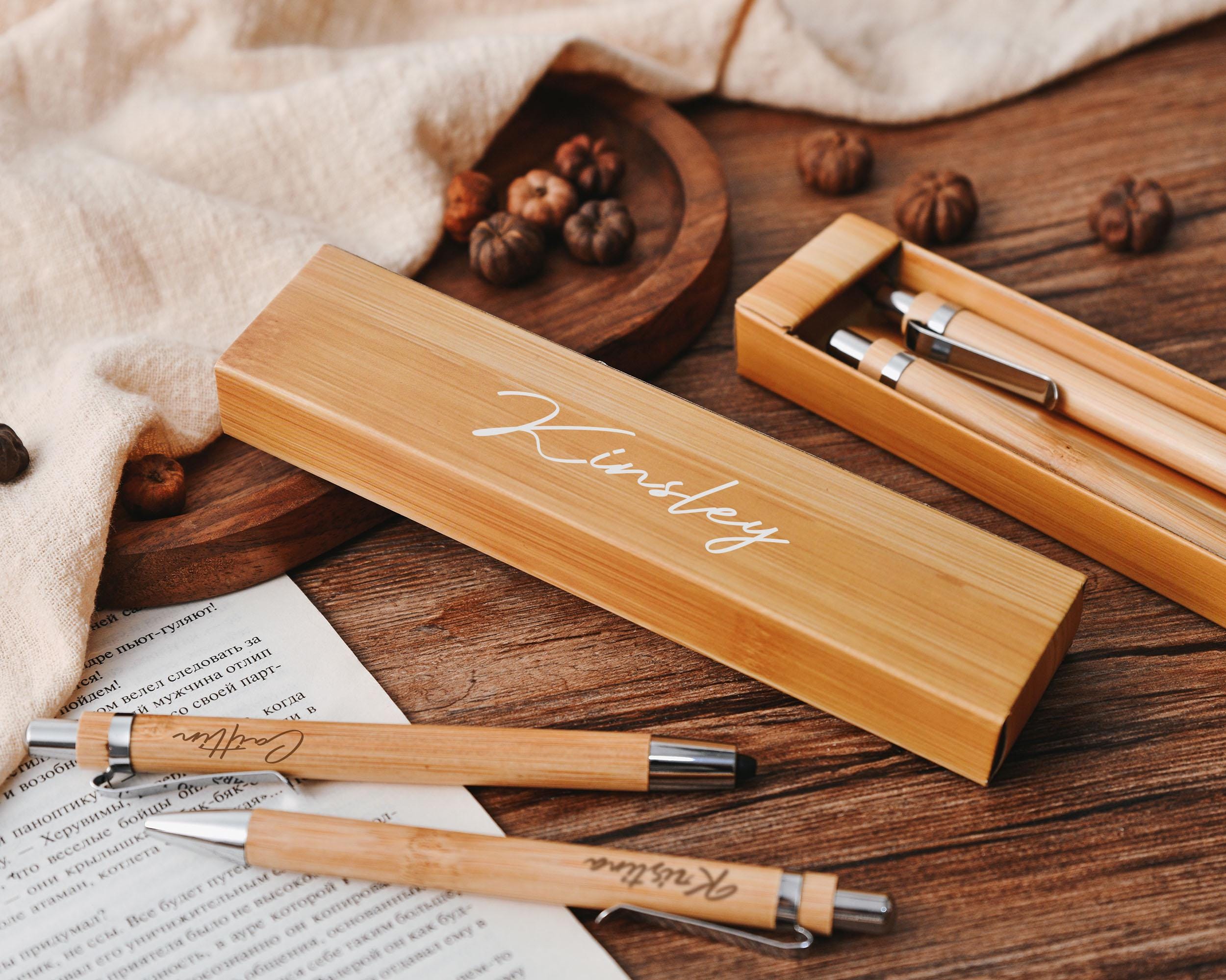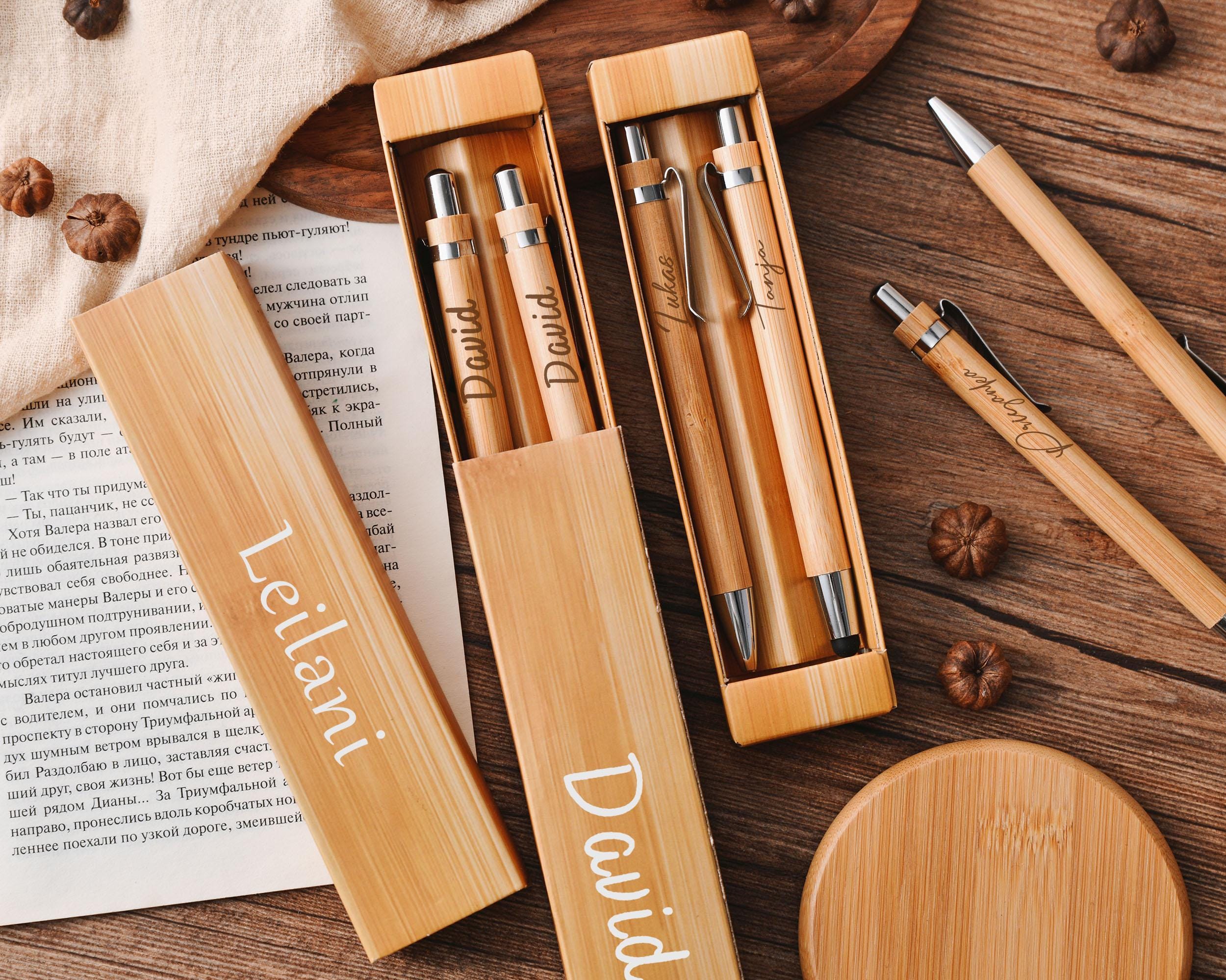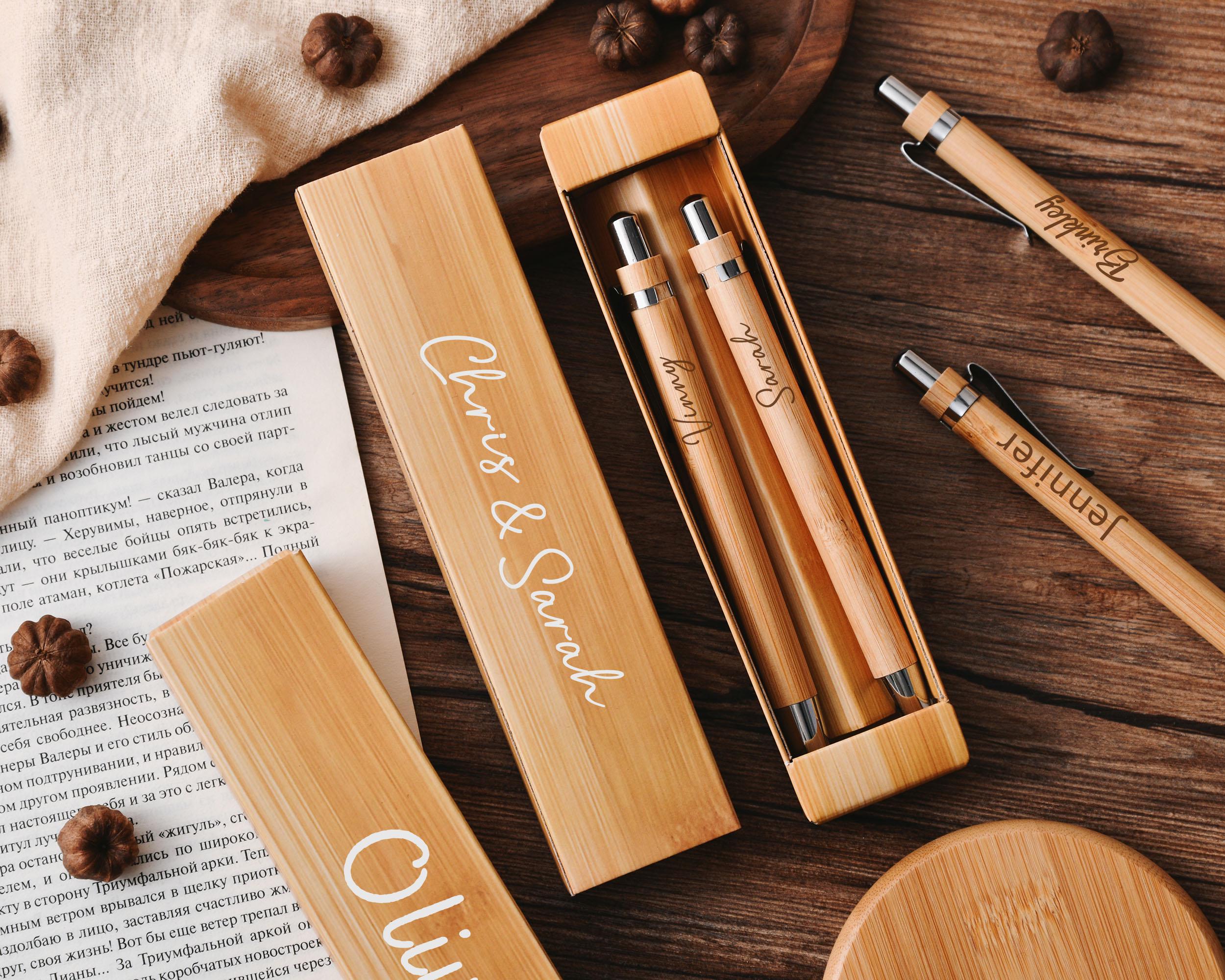 Personalized Bamboo Pen Paper Box Set - Custom Engraved Ballpoint Pens - Ideal Gift for Weddings, Parties, Anniversaries - Paper Pen Box
