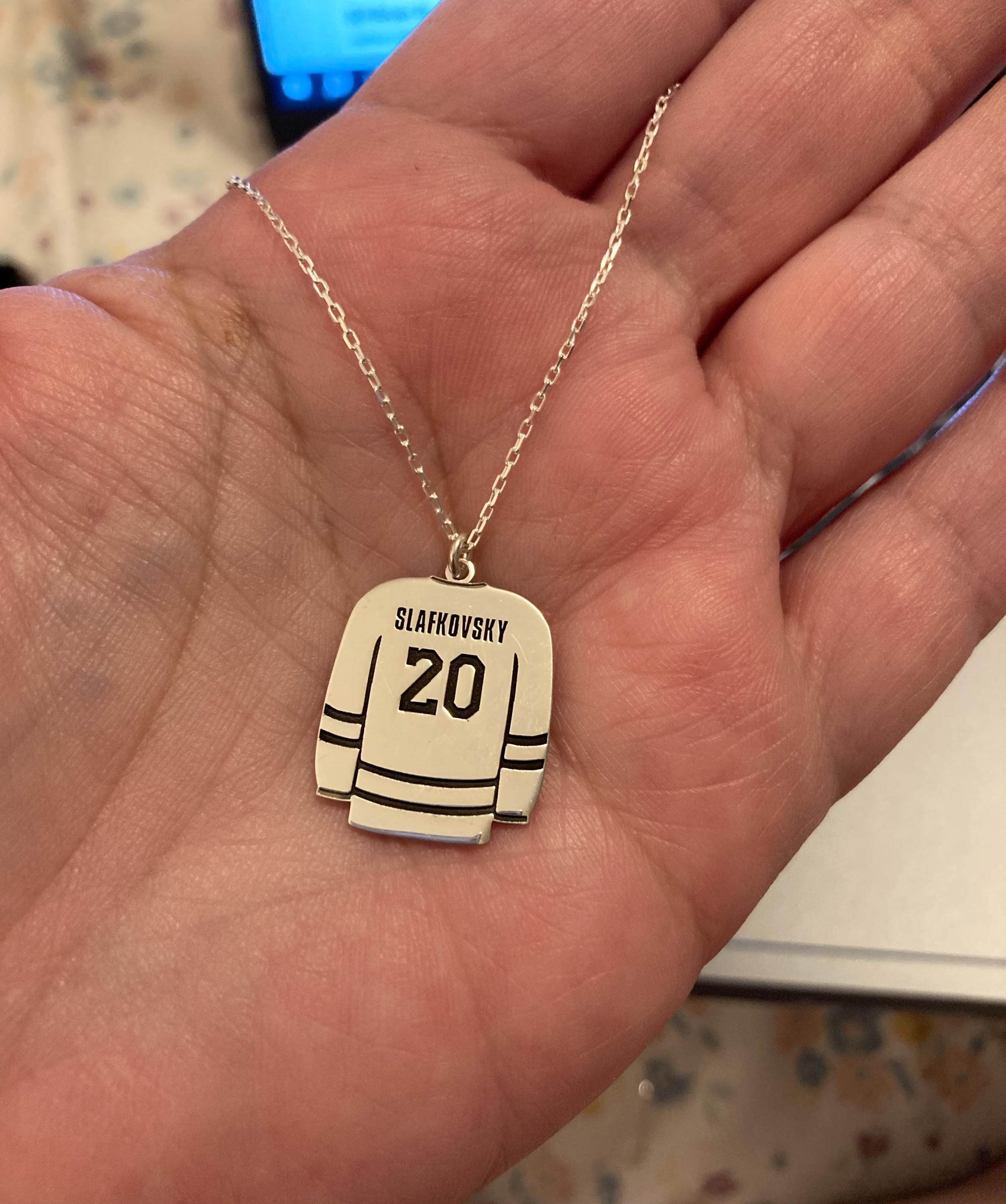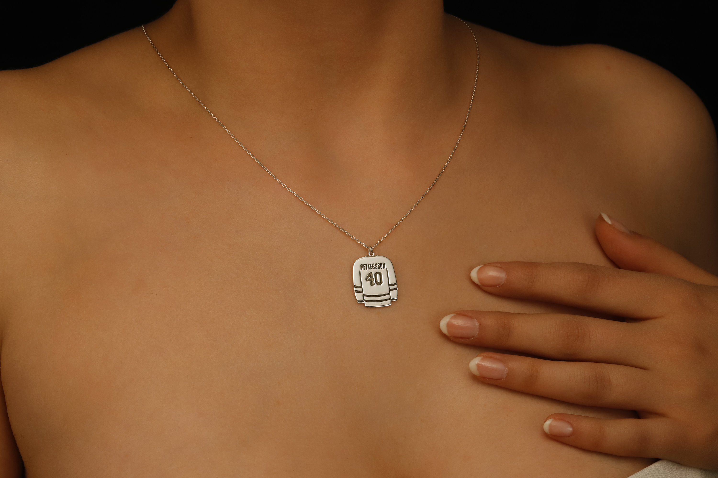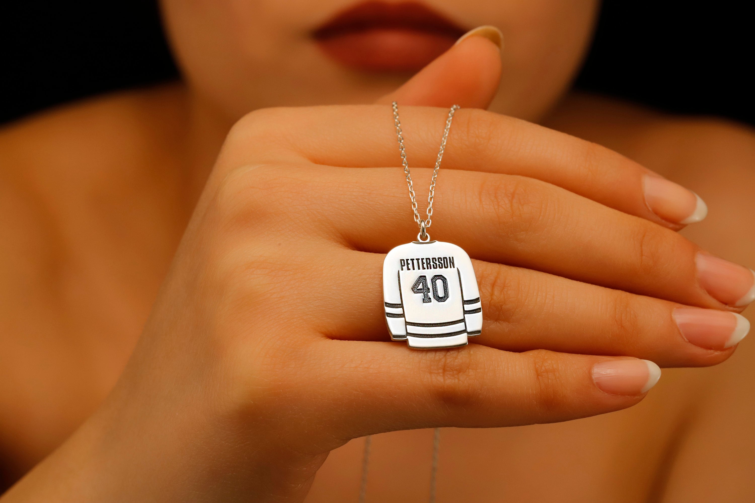 UNIQUE DESIGN - Celebrate your love for the sport with our hockey uniform pendant necklace. Made with 18k gold plating to ensure durability and lasting shine. Option to have name, jersey number engraved on the pendant for an added touch of uniqueness.
