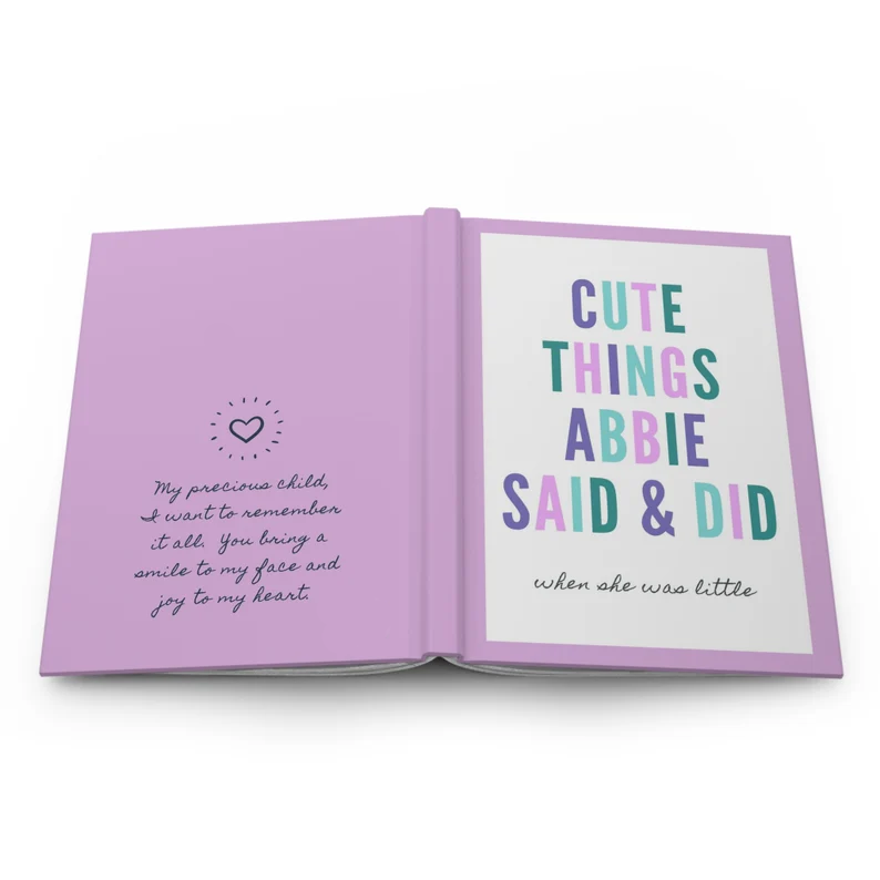 Unique design - Capture the magic of childhood with our Personalized "Things My Kids Say" Journal! This delightful notebook is perfect for new moms and anyone wanting to cherish those unforgettable moments and memories. Every parent knows that kids say the funniest things! This journal provides a dedicated space to capture those precious moments, making it a treasured memory book.
