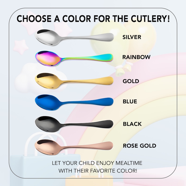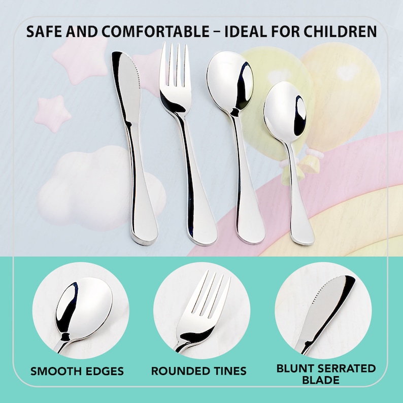 • SUPERIOR MATERIAL: Crafted from premium stainless steel, these utensils ensure your child's safety with non-toxic, rust-free materials. These dishwasher-safe silverware for easy cleaning, allowing you to spend more time with your children