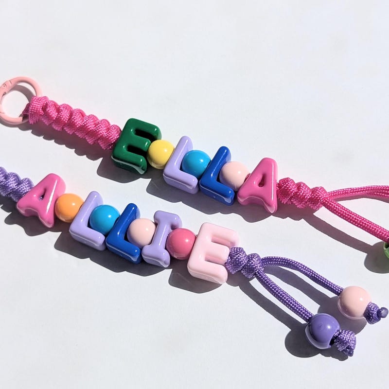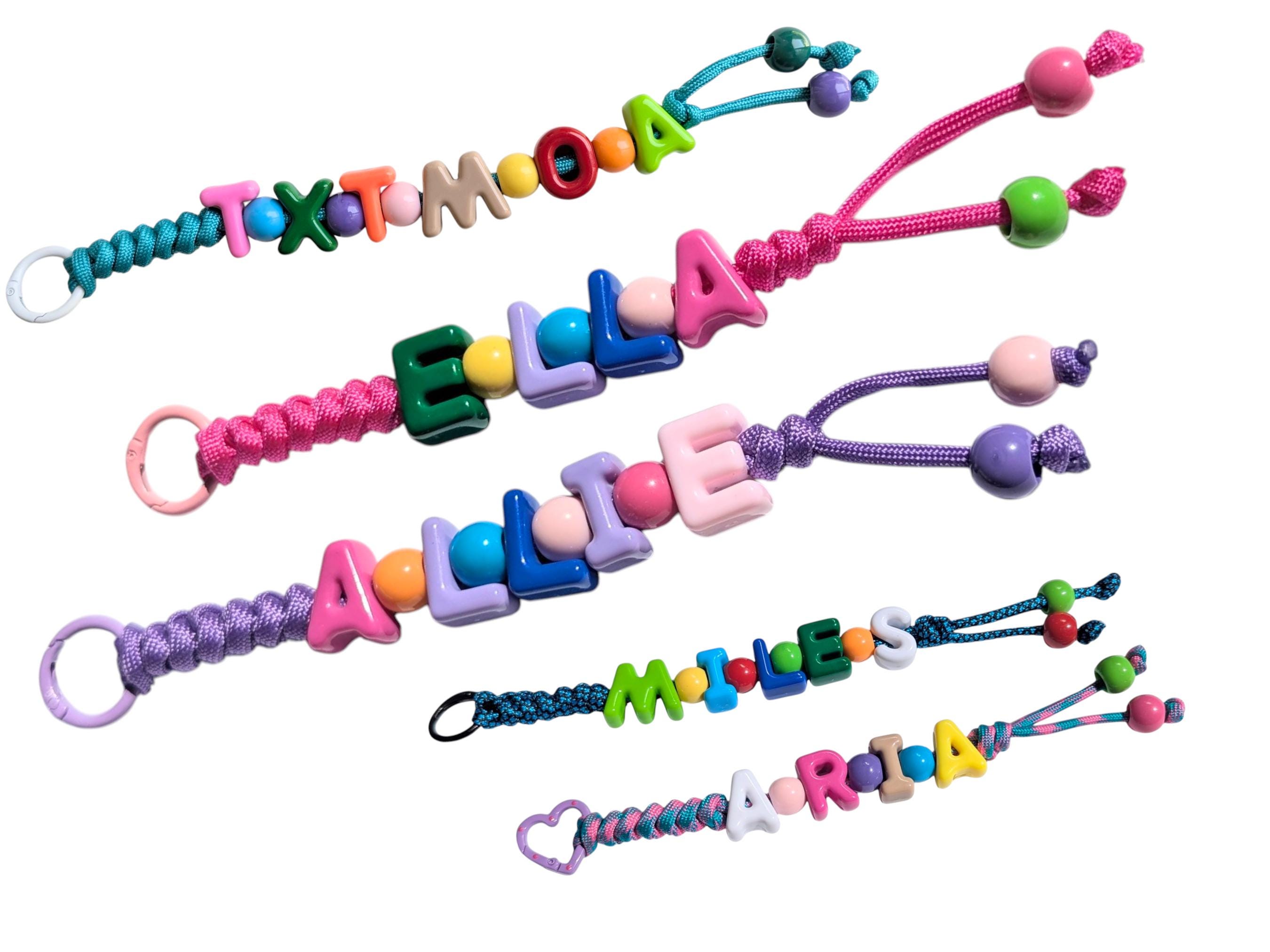 Add a burst of fun and personality to your keys, school bags, or backpacks with our custom name bead keychains! Handmade with vibrant paracord and colorful chunky letter beads, each piece is crafted with love and care — perfect for kids, teens, and the young at heart.