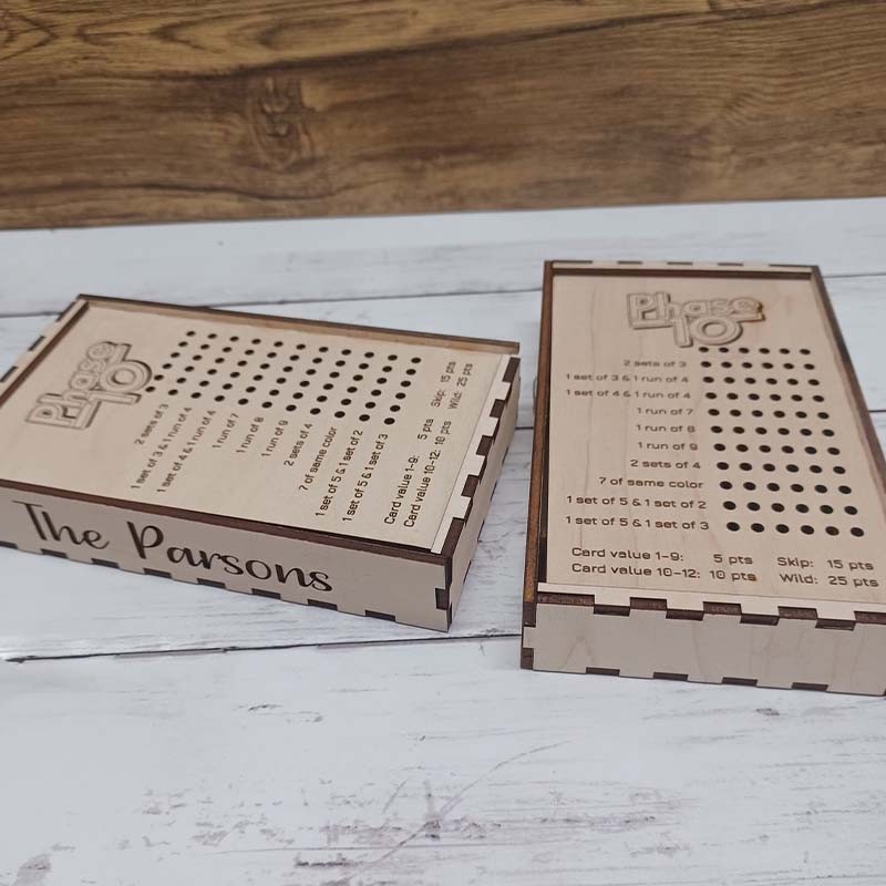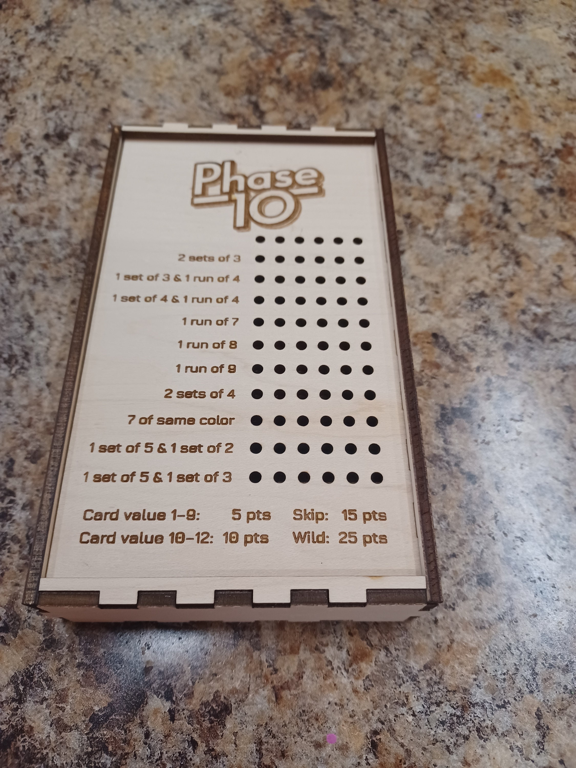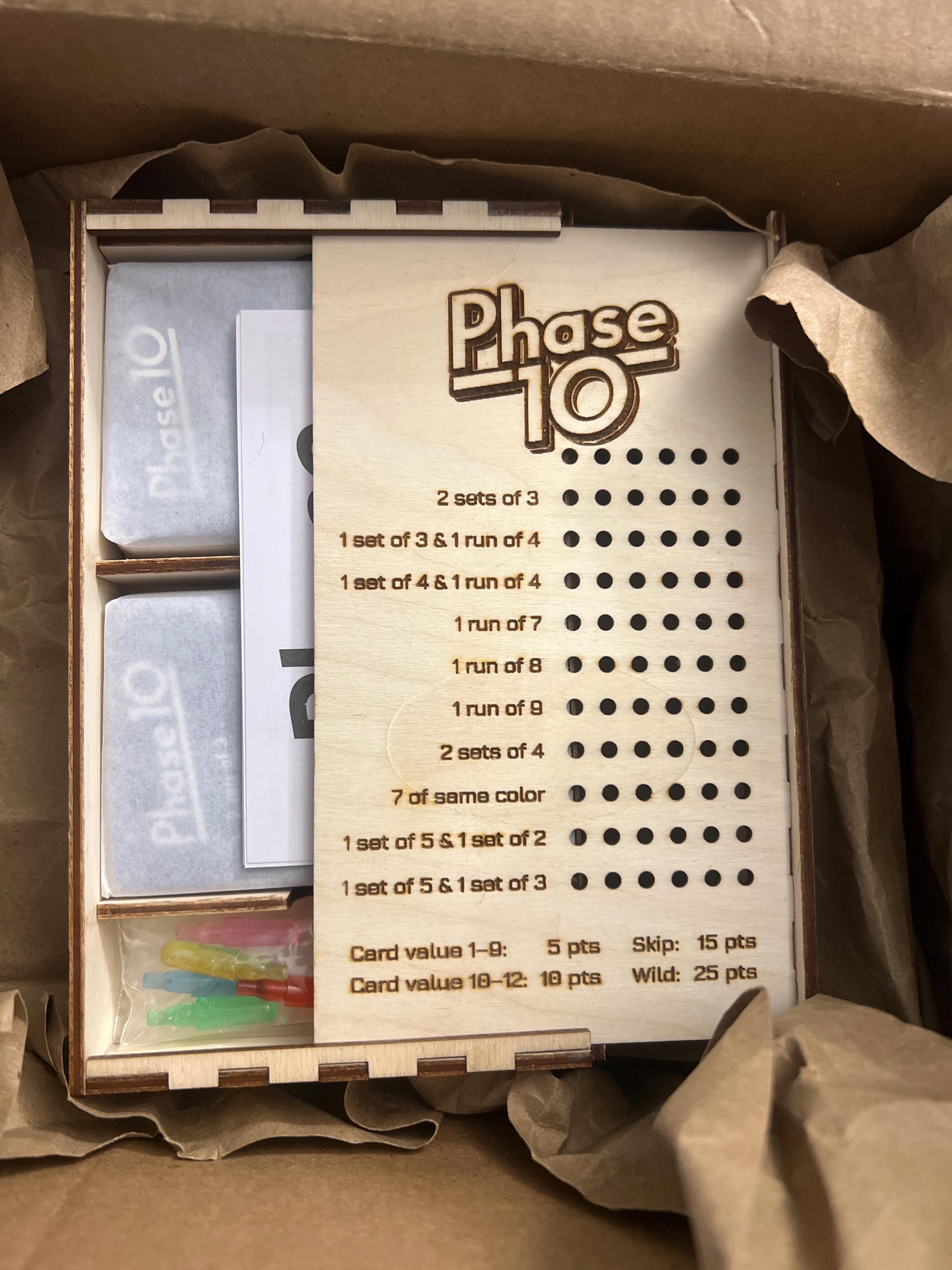 The ultimate storage solution for your Phase 10 game cards and pegs.